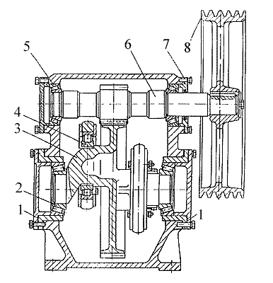 7516; 6 - вал трансмиссионный; 7 - прокладка; 8 - шкив
