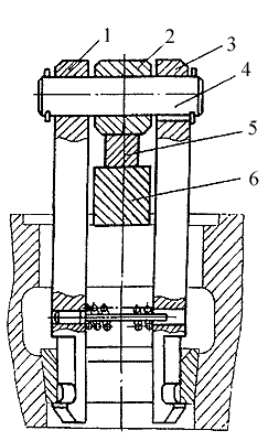 Приспособление для выемки седел (рис. 13) состоит из двух лап (поз.1 и 3), ролика 2. соединенных между собой осью 4. Выступающими буртиками лапы упираются в торец седла клапана. Между подушкой б и роликом 2 забивается клин 5, благодаря чему лапы вместе с седлом получают поступательное движение вертикально вверх.