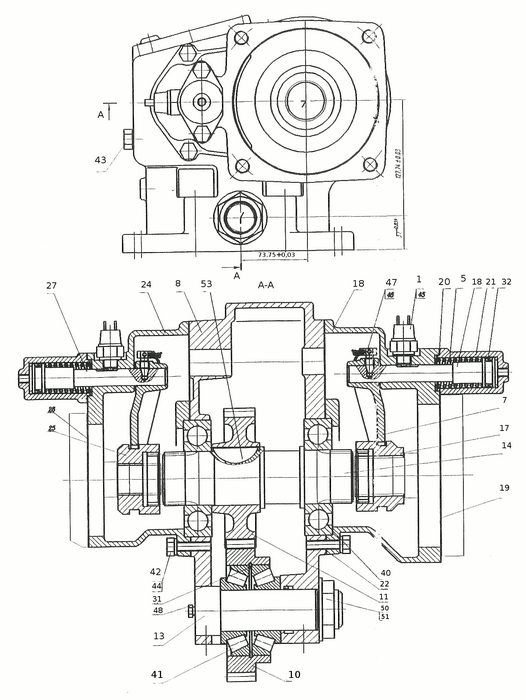 | 13 | N0.24-4208064 | Ось промежуточной шестерни | 1 |